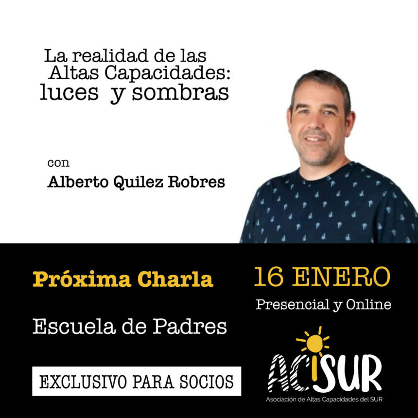 Ponente: Inés Cabezas Modalidad: Presencial y Online Fecha: 16 de Enero, de 17:00h a 19:00h Escuela de Padres ACISUR La…